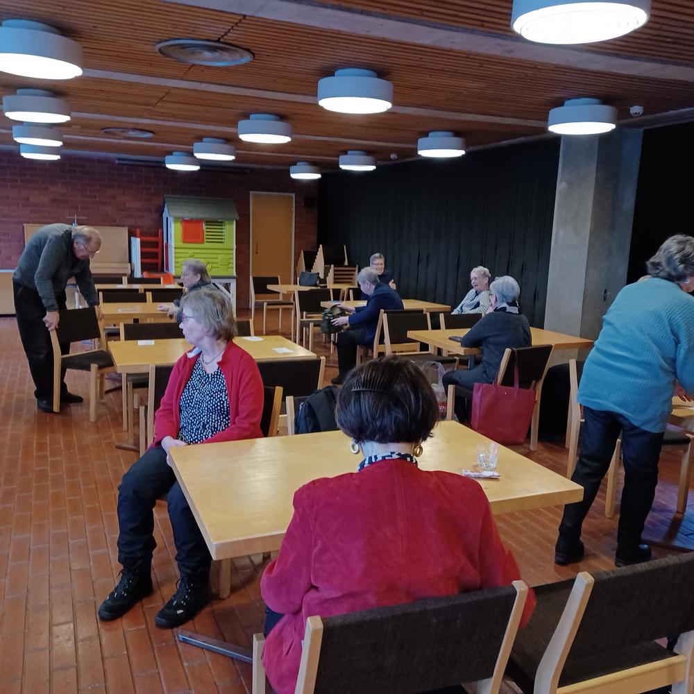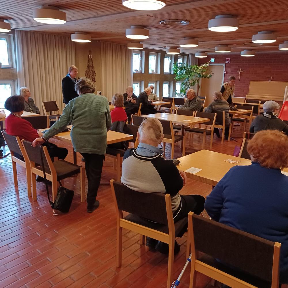 Kokous pidettiinPihlajamäen kirkon juhlasalissa . Ensin puheenjohtaja kävi lävitse menneet - ja tulevatasiat,kuten retket ja teatterit.